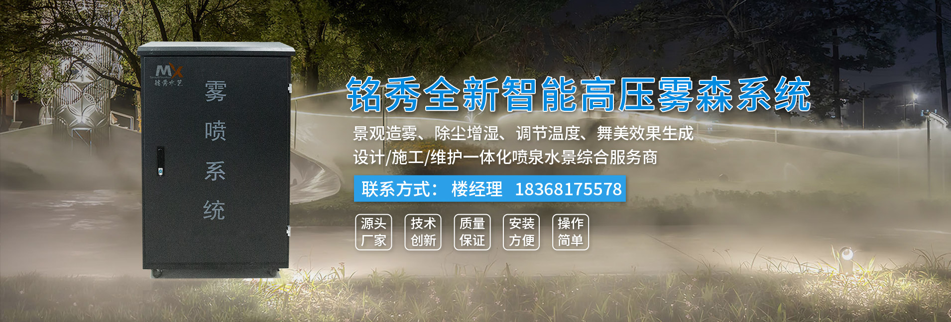 杭州銘秀水藝水景設備有限公司位于杭州余杭鳳都工業(yè)園區(qū)內(nèi),是一家從事噴霧(霧森)設備、冷霧設備、噴泉設備集各種新型水景設備生產(chǎn)、銷售與租賃的企業(yè)。